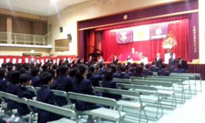 本日、午前10時より、茨田北中学校で第49期生の入学式がありました。焼野小学校の第4期生が少し緊張して入学式に出席していました。小学校と違って、人数の多さに少し圧倒されているようでした。真新しいブレザーの標準服に身をつつみ、初々しい中学1年生でした。