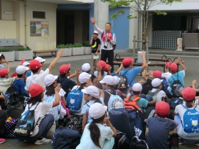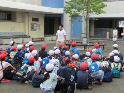 出発式では児童代表の話し、校長先生の話し、担任の先生の話し、付添いの先生の紹介などがありました。