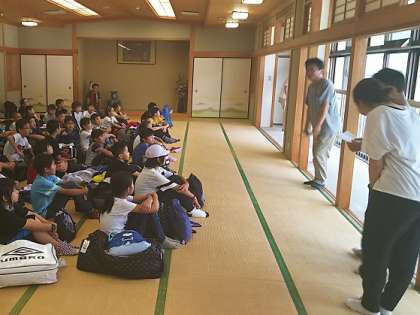 林間学習でお世話になる旅館「にしぎ」に無事到着しました。開舎式を終え、次の活動へ!