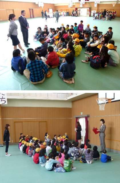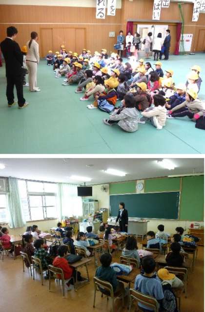 新しい先生の紹介、新しく転入してきたお友だちの紹介、校長先生のお話、担任の先生の発表のあと、各学年に分かれてクラス分けをしました。担任発表はとても盛り上がりましたね。