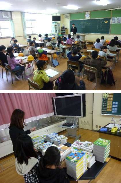 教室では、たくさんの教科書をもらいました。この1年間だいじに扱って、しっかりと学習しましょう。