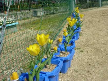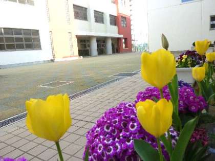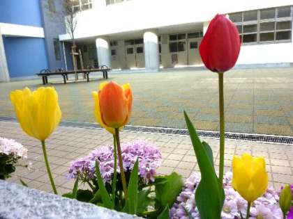 春になっても寒かったですが、ようやく暖かくなってきました。登校してくる児童には、半そででくる子もいています。焼野小学校の中庭ではチューリップがとてもきれいに咲いています。2年生が昨年植えたチューリップもきれいに咲きましたね。