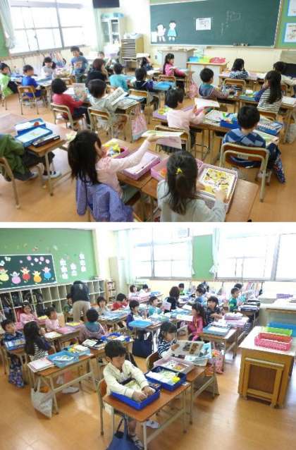 1年生は、ひとつひとつ新しいことを確認しながら学習をしています。おけいこ箱に入っている教科書をひとつひとつ確認したり、鉛筆の持ち方を確認して、教科書の「はじめのれんしゅう」で線をなぞったりして練習しました。これから本格的な学習にむけて少しずつ取り組んでいきます。字を書くときの姿勢もマスターできたかな。毎日の新しい学習でいろいろな発見があるのが楽しみですね。