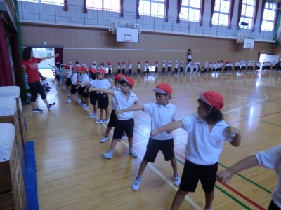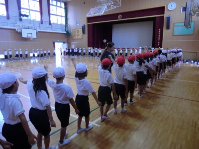 3時間目は1・2年生の練習でした。講堂で音楽に合わせてのダンスの練習をしたり、隊形移動の確認をしたりしました。