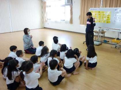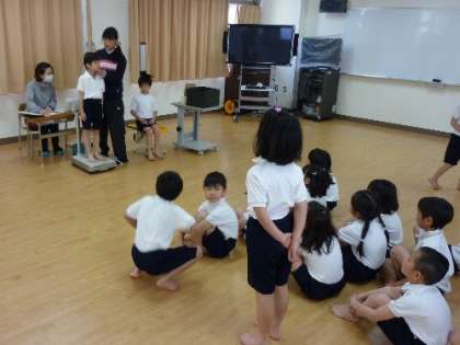 2年生の発育測定では、保健室の先生が「身体の部位をおほえよう」と教えてくれました。また、しんどかったり怪我して保健室にきたときに、しっかり先生に伝えられるように勉強しました。2年生も大きくなっているかな。身長、体重、座高を測りました。