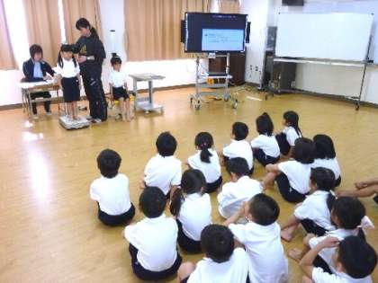 一年生も発育測定をしました。一年生には、保健室の先生から保健室の利用の仕方をやさしくていねいに教えてもらいました。ルールをまもって、静かに順番を待つことを教えてもらい、スムーズに測定ができていました。小学校でどれくらい成長していくか楽しみですね。