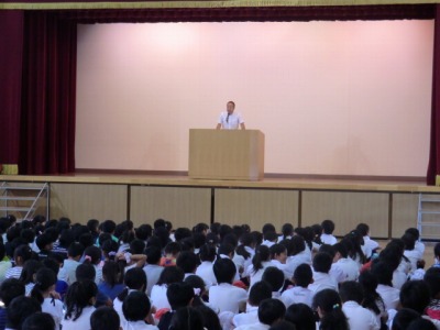 今日の児童朝会で、校長先生から運動会には大きく二つの目的があり、一つは自分のために全力を尽くすこと、もう一つは人のために全力を尽くすこと、この二つがそろって初めて見ている人すべてに感動が与えられるというお話がありました。本番まで残り1週間をきりました。この言葉を忘れずに、運動会当日は練習の成果を思う存分発揮してがんばりましょう。