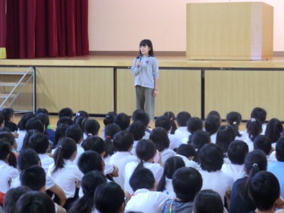 運動会の練習が始まり、運動場に出る機会が増えるとともに、中庭や1階の廊下、玄関に多くの砂が上がるようになりました。砂が上がると見た目の汚れだけでなく、滑りやすくなるなど安全面においても注意が必要となります。また、良い環境で学習ができるようにと、玄関などをきれいにしている管理作業員さんの日々の作業も大変になります。そのため、運動場から戻るときは足ふきマットで靴についた砂や土をしっかり落とすようにしてください、というお話が環境委員会からありました。