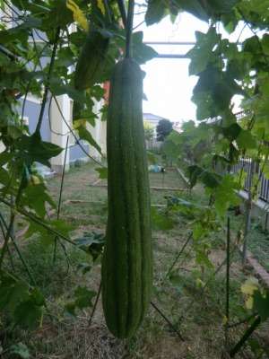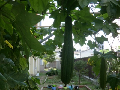 植物の成長する力の大きさには、時々驚かされることがあります。数日前まではあまり気にしていなかった学習園のヘチマの実が、気がつけば写真のようになっていました。(写真では分かりにくいもしれませんがゆうに60cmは超えています。)