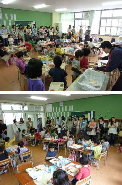1年生の給食参観にはたくさんの保護者の方に見にきていただきました。ありがとうございます。しっかり食べれていたでしょうか。続いての学級懇談にも引き続き残って参加していただきました。5月には家庭訪問もあります。この1年間をよろしくお願いいたします。