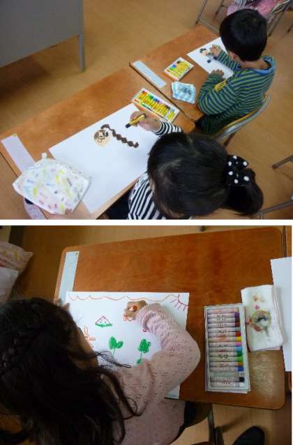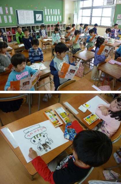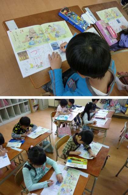 いろいろな歌を歌ったり、クレパスで絵を描いたり、ひらがなの書き方をしっかり学習したり、いろいろな教科の学習が進んでいます。みんなの協力しながら、自分の学習をしっかりとすすめることが大切ですね。がんばれ1年生!