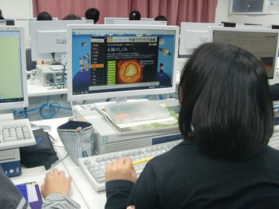 6年生がパソコン教室で、インターネットを使った調べ学習に取り組みました。テーマは「月と太陽の表面」です。新たな発見があるたびに、興味津々に取り組んでいました。