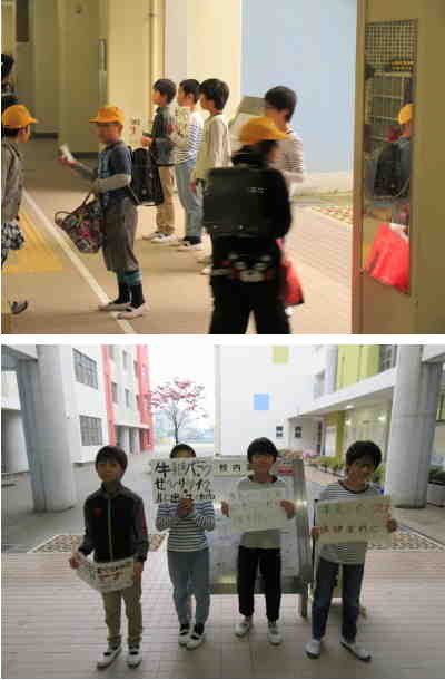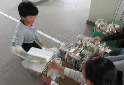今日は「やけののやの日」でした。6年生が修学旅行で不在の中、5年生の環境委員の人たちが中心となってがんばりました。みんなの協力のおかげで、今日もたくさんの牛乳パックが集まりました。