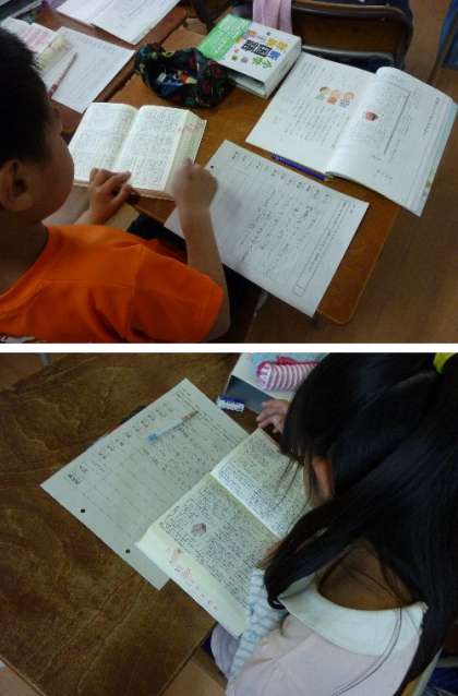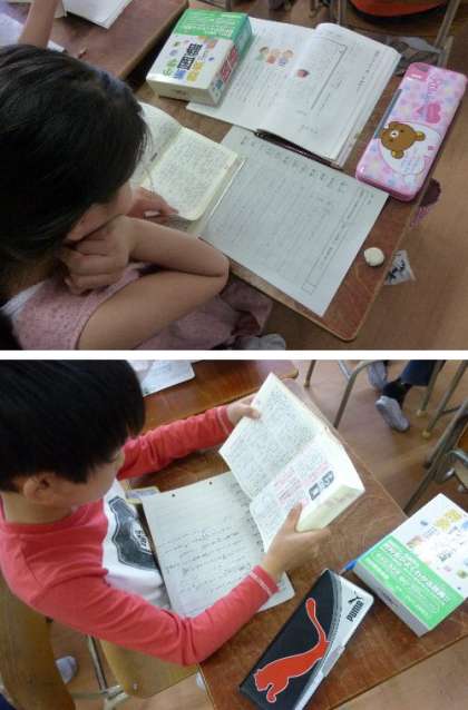 3年生が授業で国語辞典を使って調べています。国語辞典を使って、意味を調べているところです。辞典にはたくさんの言葉が載っていますね。よく読んでみると、いろんなことがわかって面白いですね。