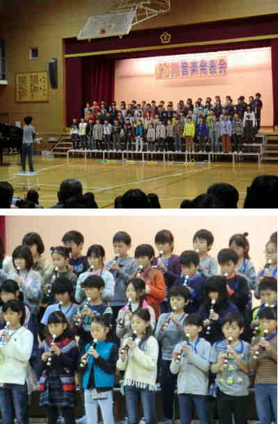 本日の土曜授業で4年生と5年生が3時間目に音楽発表会を行いました。どちらの学年も今までの練習の成果を発揮して、素敵な歌声や演奏を披露することができました。まずは4年生の様子を紹介します。