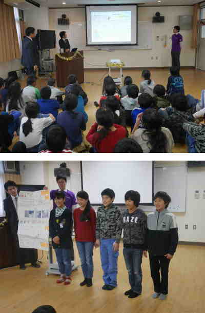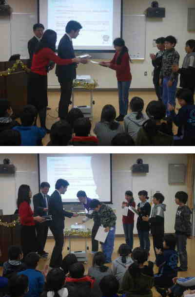 1学期にGEさんによる「発明家プロジェクト」の出前授業で、6年生が取り組んだアイデアが、このプロジェクトにおけるコンテストで全国1位に選ばれました。その表彰式が、6時間目に多目的室で行われました。出前授業当日に来ていただいたGEの担当の方から賞の説明を受け、表彰状と記念品をいただきました。