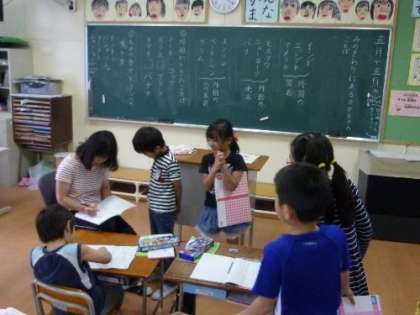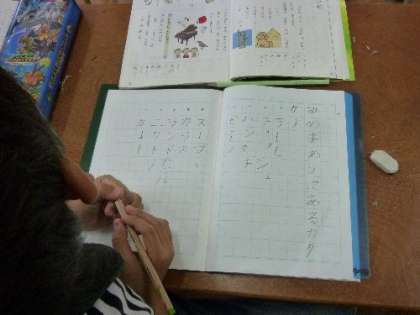2年生の国語では、身の回りにあるカタカナの言葉を10個さがしました。一生懸命考えてノートに書いています。テレビ、ハンカチ、カラス、ランドセル・・・・いろいろありますね。