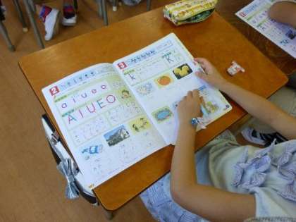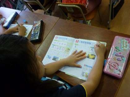 3年生で初めて学習することかたくさんあります。そのうちのひとつにローマ字があります。AIUEOと練習をしています。たくさん覚えることがありますが、がんばりましょう。