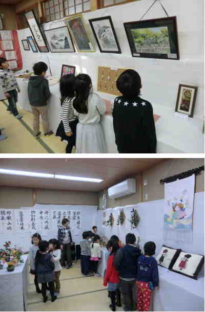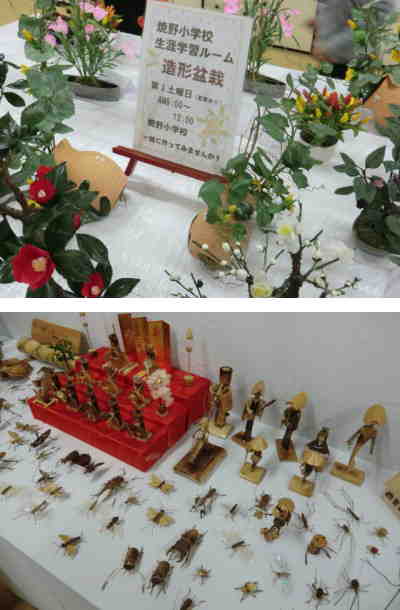 毎年焼野小学校の作品展と同時に地域の作品展も開催されています。焼野福祉会館にいつもお邪魔をして、地域の方々が作られた作品を鑑賞させていただいています。一つ一つの作品の素晴らしさに、いつも子どもたちの驚きの声が聞かれます。
