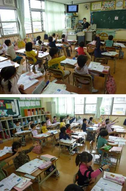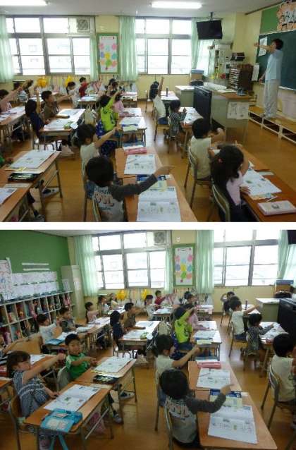 1年生の国語では、ひらがなを一文字ずつ確実に身につけられるように、指で書き方を練習したり、ノートに練習しています。なんでも基本が大切だからね。がんばりましょう。
