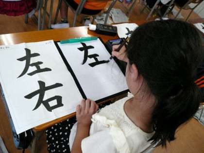 また、4年生の習字では、「左右」と書いています。「左」と「右」では書き順がちがいますね。見本をみながらとてもきれいに書けていますね。