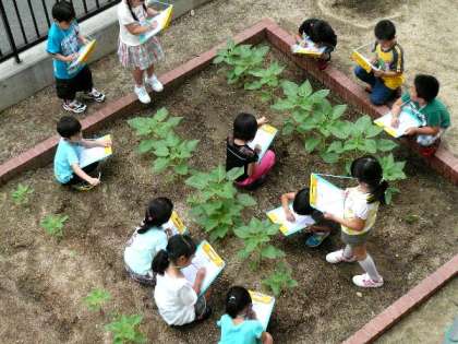 1年生では、学年花壇の観察と記録です。授業には集中力がいりますね。