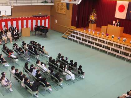 1組32名、2組31名、計63名のニコニコ顔の1年生が、焼野小学校に入学しました。校長先生や来賓の皆様の「入学おめでとう!」の言葉に、一つ一つ「ありがとうございます」と元気に応えることができました。会場全体が笑顔に包まれた、あたたかい入学式となりました。