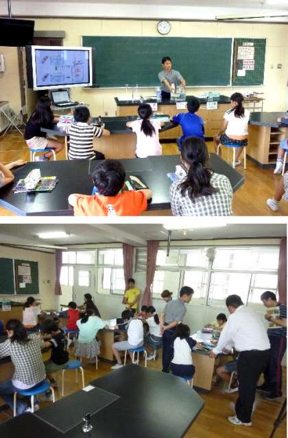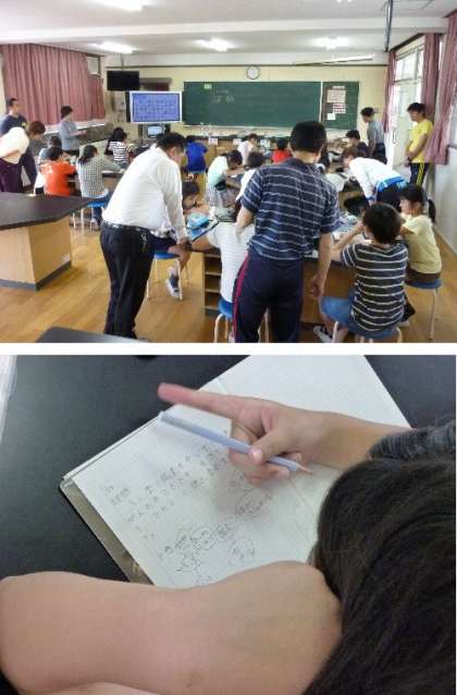 研究授業は6年生の理科です。たくさんの先生で研究をして、授業研究討議会をおこないました。子どもたちが実験から予測して考えて、意見を交流しあい、論理的思考を高めていきました。根拠を考えて結果を推論していくことにがんばっていました。
