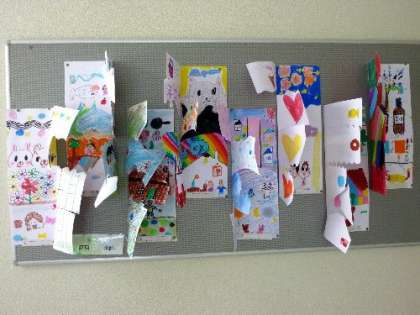 4年生の掲示版には、「夢の冷蔵庫」の作品が掲示されましたよ。きれいです。