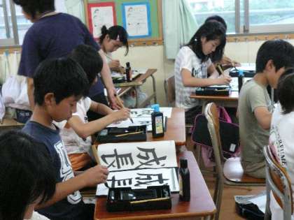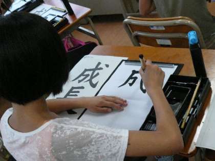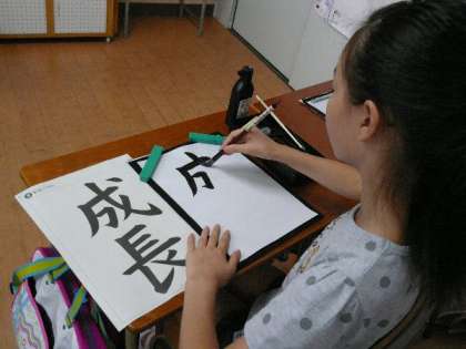6年生の習字で「成長」と書いています。ていねいに一筆一筆、筆を進めます。6年生は学校のリーダとして、学校を引っ張ってくれています。成長していますね。