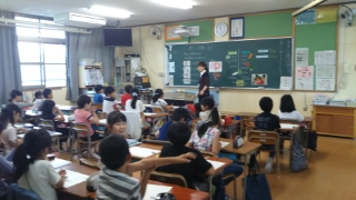 5月31日に3・4年生で、6月5日に1年生で、「栄養指導」がありました。年に2回、区内の栄養教諭が学年に応じた栄養指導に来られます。