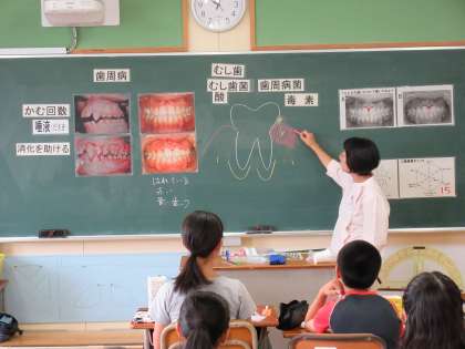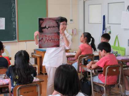 6月5日、6年生を対象に「歯と口の健康教室」を行いました。講師の歯科衛生士さんから、歯のみがき方を中心に、歯と口の健康を保つことの大切さを教えていただきました。