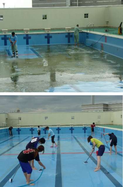 いよいよプールが始まる!先生たちがプールおそうじ大作戦