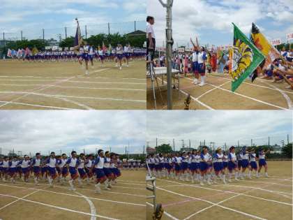 校区の茨田北中学校の体育大会がありました。今年卒業した中学1年生も入場行進や競技にがんばっていました。迫力ある650人の入場行進では、皆がそろって迫力がありました。ラジオ体操も手先までそろっていて、見ていて気持ちがひきしまります。