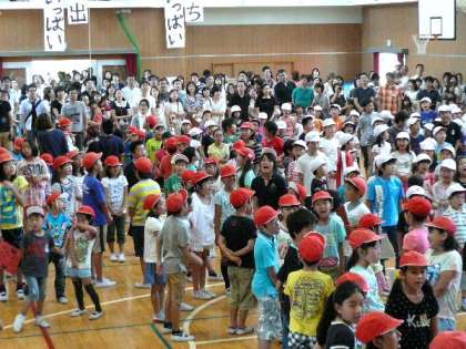1年生から6年生の全児童がとてもよく練習して、大きな声でメッセージを言うことができました。