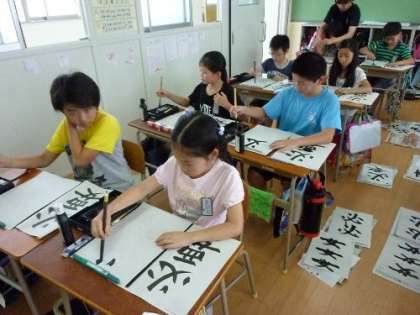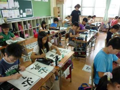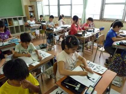 5年生が習字をしています。「必要」という漢字にチャレンジしています。筆順やバランスがむずかしいですね。よく見本をみて書いてみましよう。