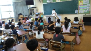 昨年度から、地域の児童英語講師の方に来ていただき、英語活動を行っています。どの学年もとても楽しそうで、笑顔がたくさん見られました。