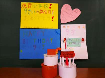 6月29日は焼野小学校の創立記念日でした。それぞれのクラスで、創立記念日のお話があり、6年生が自主的に学校の9回目の「誕生日を祝うメッセージカード」を作ってくれました。とても嬉しい出来事でした。