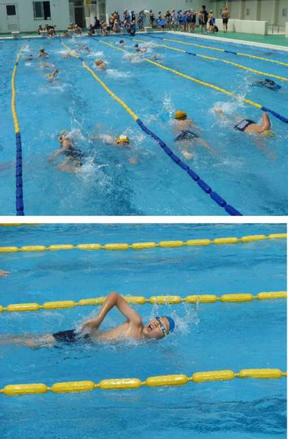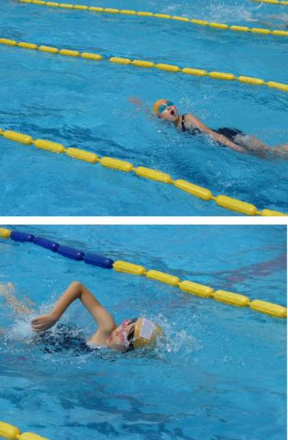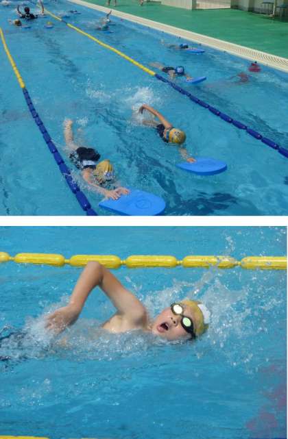 5・6年生の水泳は、さすが高学年です。しっかりきまっていますね。かっこういいですね。水しぶきの迫力がつたわってきますね。
