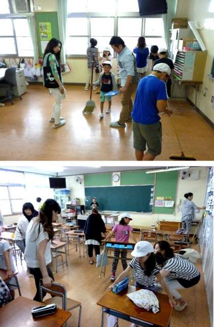 創立お祝いの会のあと、たてわり班で焼野小学校を清掃しました。保護者の方々にもご協力いただきお掃除をしていただきました。子どもたちの手のとどかないところなど、ぞうきんでの拭き掃除をしていただき、ありがとうございました。