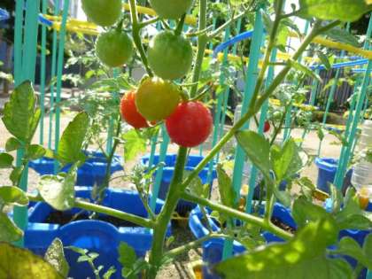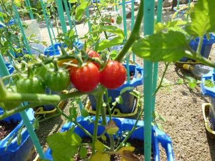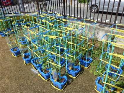 2年生が育てているミニトマトに赤い実がつきはじめました。すくすく育っていて、収穫が楽しみです。