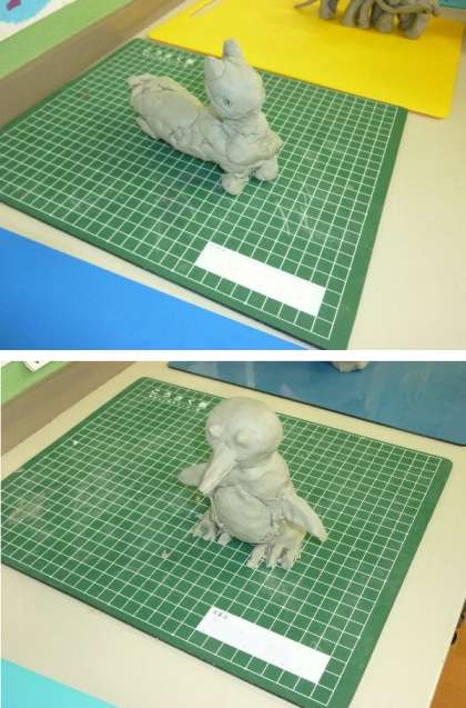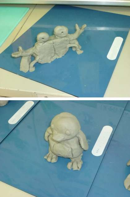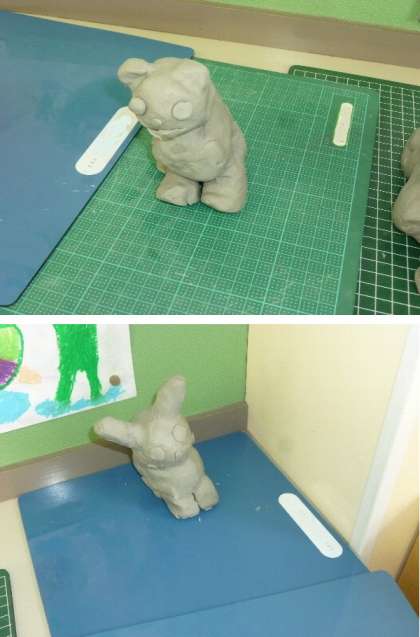 2年生がねんどで動物をつくりました。とってもよくできていますね。かわいいですね。