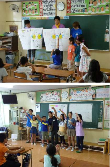 6年発明家プロジェクトの最後は、班ごとに発明したものを学級で発表しました。GEのかたがたから、たくさんほめていただき、なごやかにもりあがっていました。閉会は体育館で最後のまとめを、児童代表があいさつし、校長先生からもお話しました。GEの代表のかたからも、とてもうれしい言葉をいただき、たくさんの成果をえることができました。