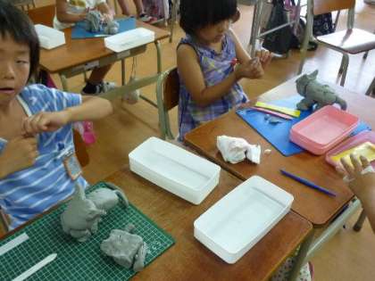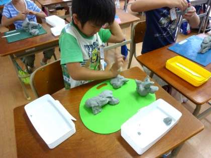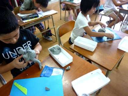 2年生がねんどを使って動物をつくっています。手を使っていろいろ工夫して作るのって、とってもたのしいね。