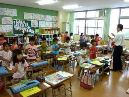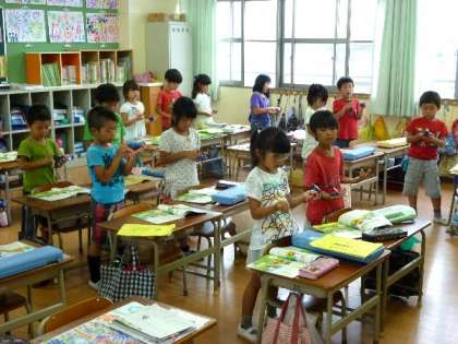1年生が「ぶんぶんぶん」を歌いながら、カスタネットでリズムをとっています。ちょっとむずかしいかな。がんばりましょう!