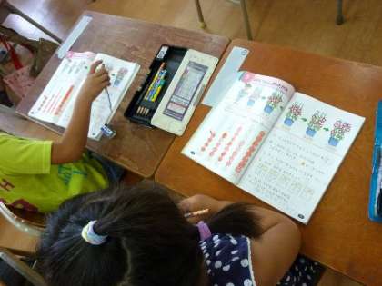 1年の国語では、いろいろな場面を具体的に想定して数を扱います。あさがおの咲いた数を曜日ごとにチェックして数えます。