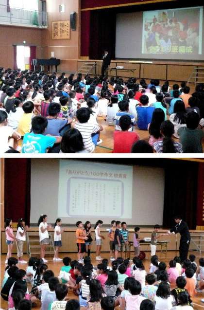 1学期末終業式で「ありがとう」100字作文を表彰!
