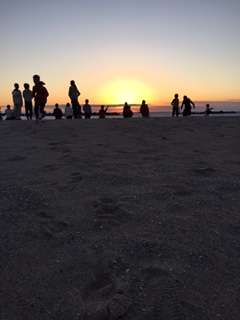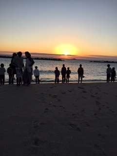 よいお天気で、すてきな朝陽を見ることができました。この後は、ビーチフラッグです!