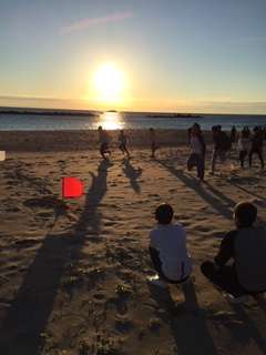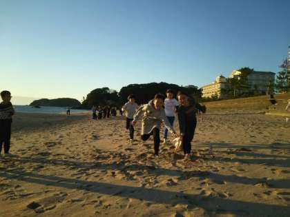 朝陽の降りそそぐ中、ビーチフラッグで盛り上がりました♪