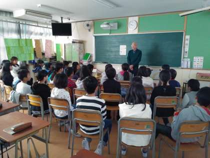 お話サークル「シフカブールカ」の皆さんによる「お話会」がありました。2時間目は1組、3時間目は2組という時程で、全学年で行いました。ろうそくを点けるとお話の世界が始まり、名作童話が語られました。子どもたちはしばし、物語の世界に浸っていました。